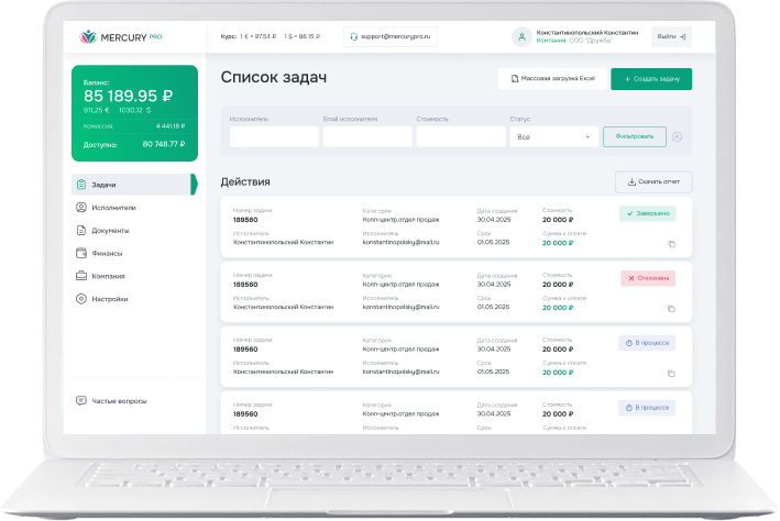 Соберите всех исполнителей в одном интерфейсе и платите быстро — индивидуально или массово.