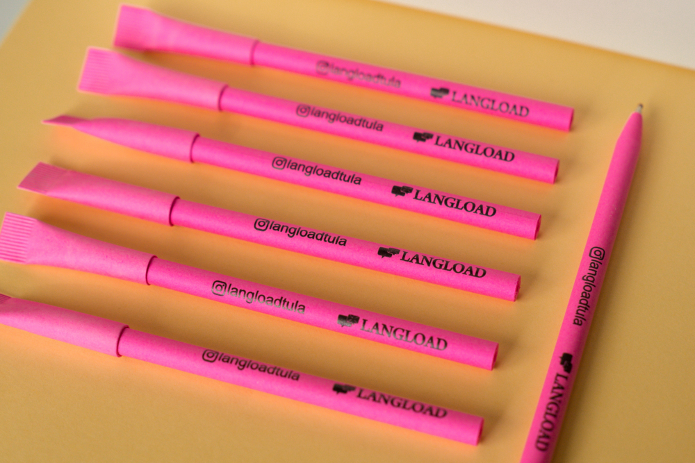 - Шелкография. Отличается от тампопечати визуально более выпуклым, плотным рисунком. При этом методе допускается нанесение всех цветов одновременно. Особенность шелкографии в том, что ее чаще используют для изготовления ручек с логотипом небольшими партиями.
