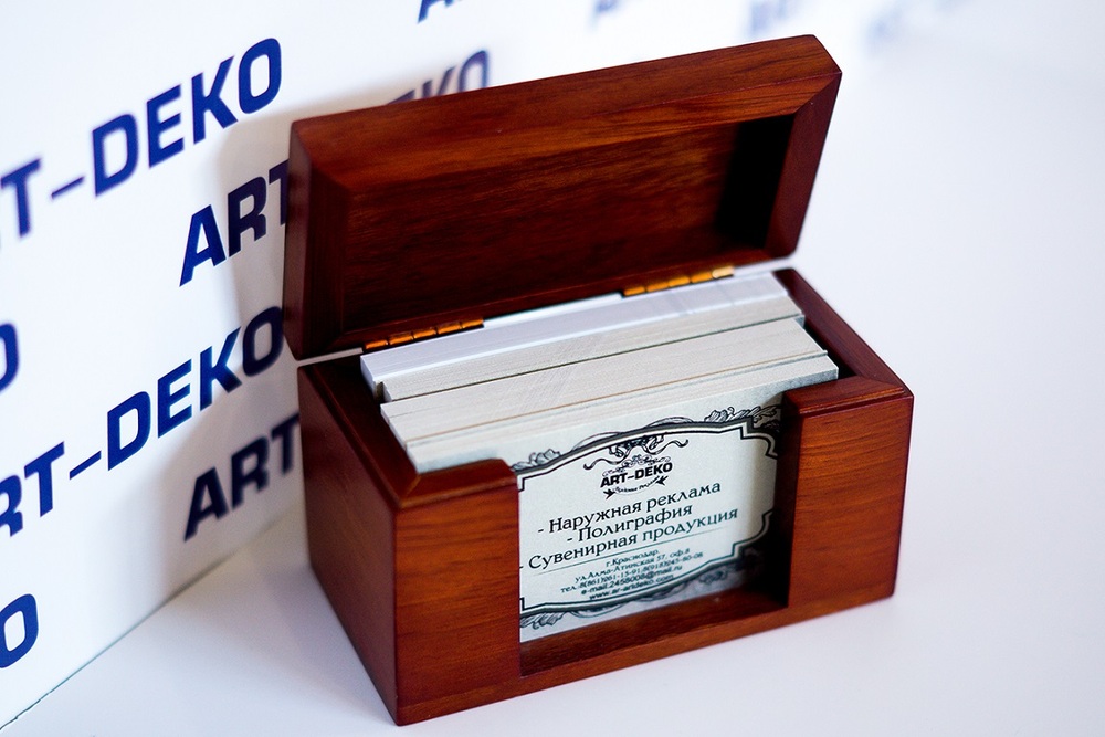 Если вы ищете надежного партнера, обращайтесь в "Арт-Деко". Работать с нами удобно и выгодно - оплачивайте товар удобным для вас способом и получайте заказ точно в оговоренные сроки. Вы можете оценить качество продукции, заказав образец визитки. Осуществляем доставку по всему миру! Мы работаем без перерывов и выходных.
