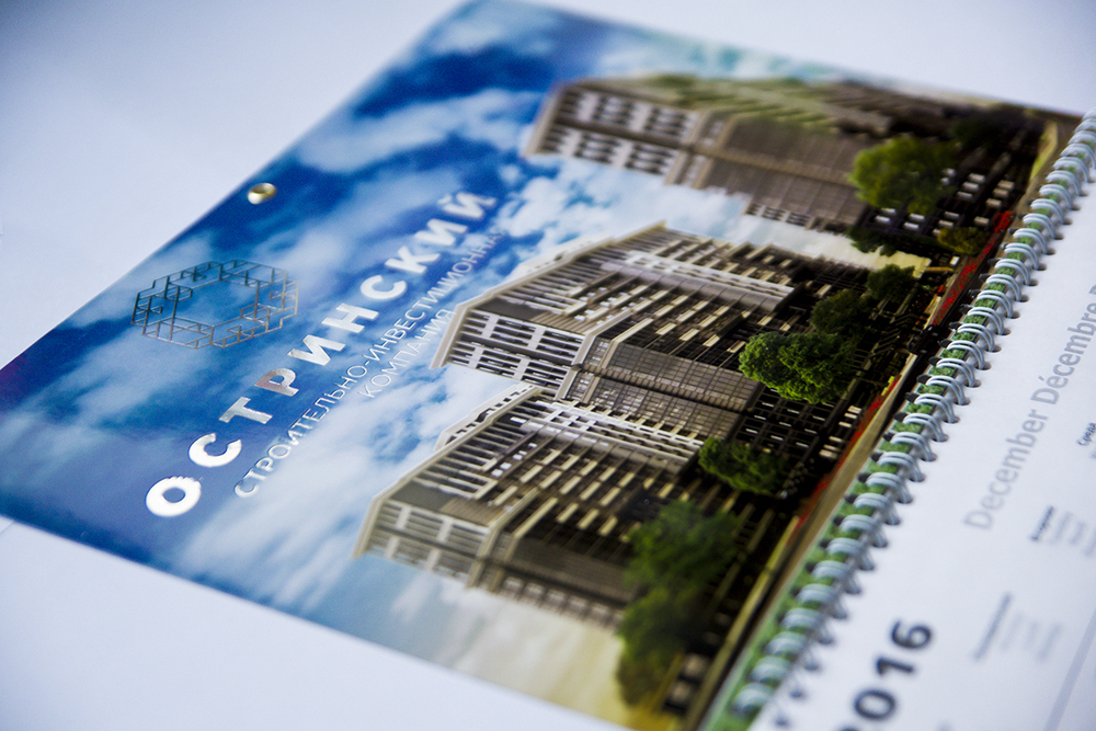Мы осуществляем изготовление настенных календарей с помощью УФ-печати, которая обеспечивает высочайшее качество цветопередачи. Готовое изделие может быть подвергнуто как полной, так и выборочной лакировке для придания ему эффектного внешнего вида. Дополнительными элементами дизайна могут являться тиснение или фольгирование, высечка и нанесение на календарь объёмных элементов по желанию заказчика.